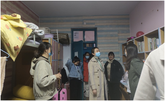 在这春和景明、桃李芳菲的三月,我校迎来了寒假返学季,3月4日-3月7日,我院近1800名学子按时返校报到,为深入了解我院学生的生活和学习情况,提高学生宿舍安全意识,报到的每天下午,我院党委副书记贾艳艳带领我院的学生工作队伍的老师们深入学生宿舍进行走访。