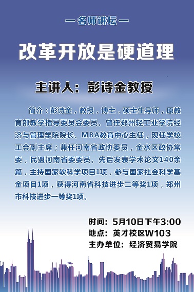上一条:改革开放是硬道理 ——彭诗金教授为经贸学院做学术讲座