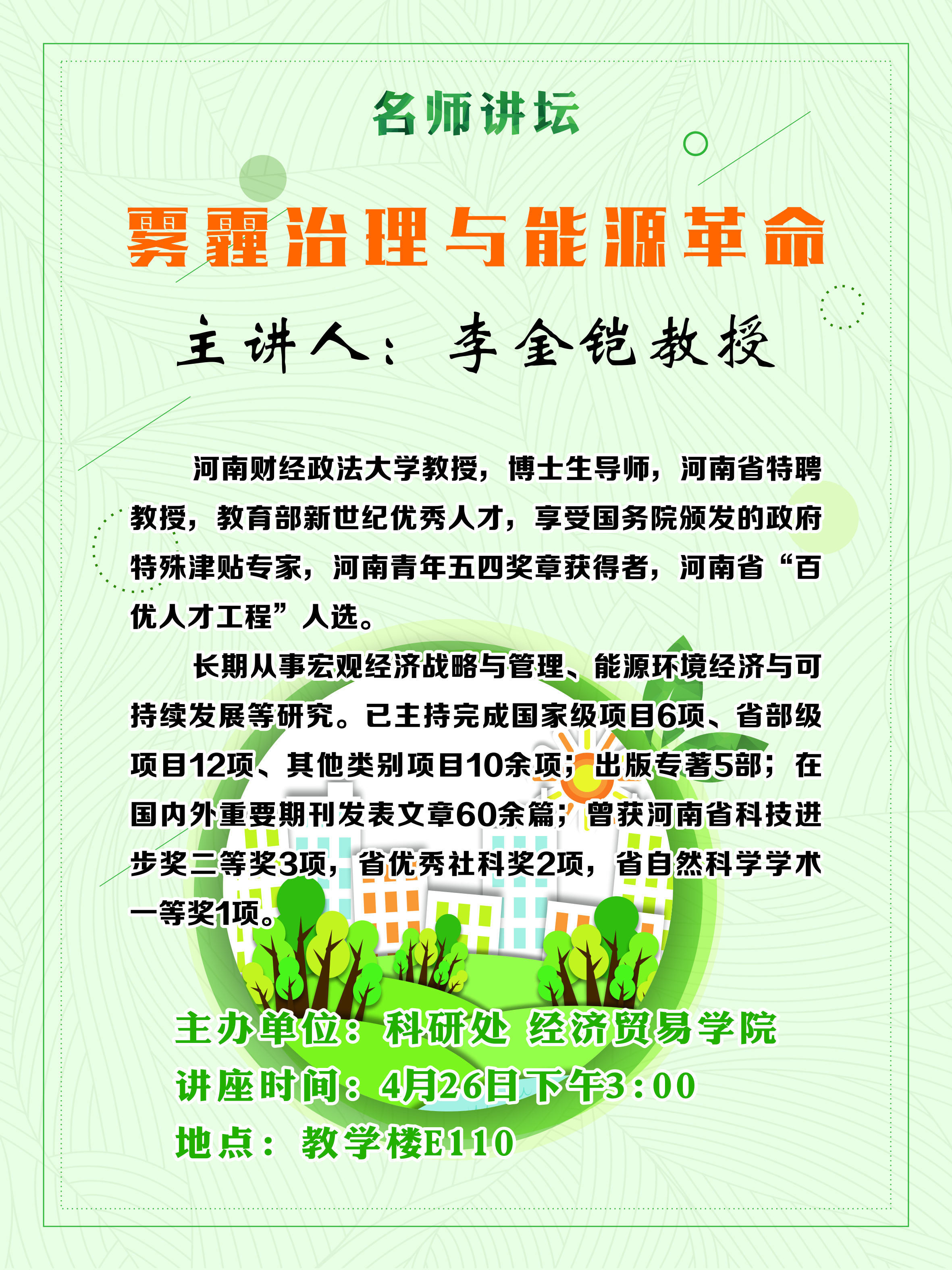 上一条:雾霾治理与能源革命 ——河南省特聘教授李金铠为经贸学院做学术讲座
