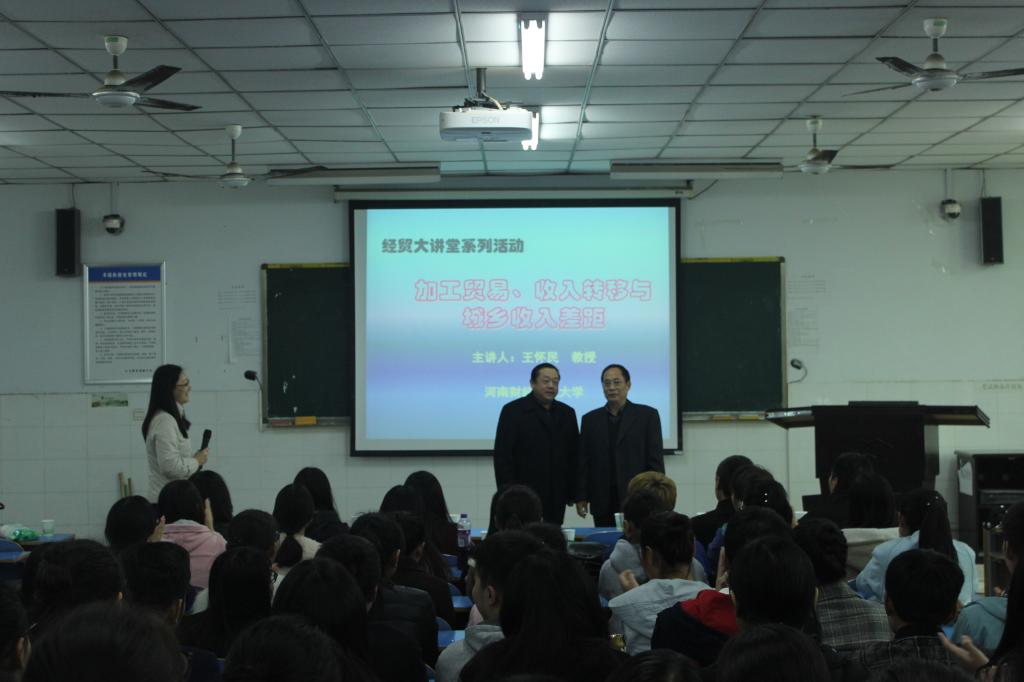 1117日下午,河南财经政法大学《经济经纬》编辑部主任王怀民教授受邀来到我校,接受经贸学院客座教授的聘任,并在E205室给经贸学院师生作了一场精彩的学术讲座。