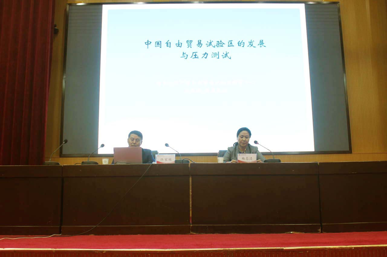 讲座中,佟教授首先对中美贸易战的影响进行了简单回顾,然后从中国自由贸易试验区的布局、我国自由贸易区及自贸港建设的机遇和挑战、建设自由贸易试验区的目的、试验区的改革取得的成绩、改革的探索,框架内的创新、加快自贸区和自贸港体制机制建设的建议等十六个方面进行简明扼要、耐心细致的讲解。最后,佟教授与我院师生进行了互动,师生们围绕郑州自由贸易区、郑州航空港等的建设及压力测试的指标、方式等问题进行踊跃提问。佟教授幽默风趣的解说与深入浅出的剖析,展现了其渊博的学识和独到的见解,给师生们带来了一场思想上的盛宴,使大家受益匪浅。