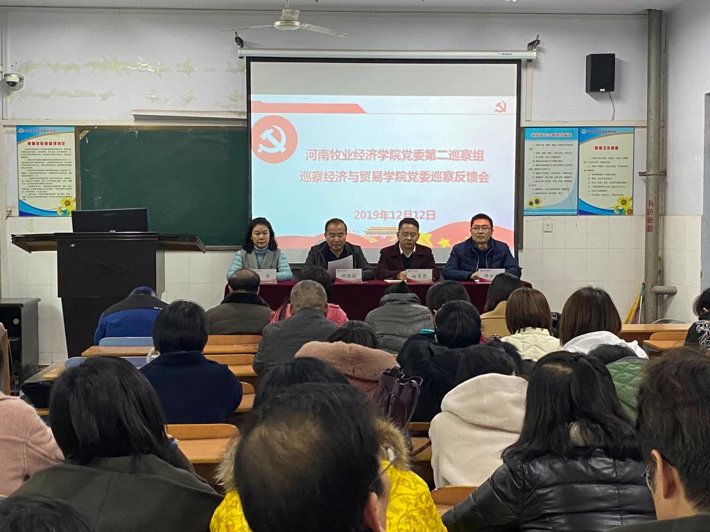 会上巡察组组长顾国超宣读了河南牧业经济学院党委第二巡察组巡察经贸学院党委的反馈意见。介绍了巡察组巡察经贸学院期间工作开展情况,肯定了学院领导班子坚持以习近平新时代中国特色社会主义思想为指导,围绕学校中心工作,在不断增强管党治党责任,不断推进党建工作、教科研工作和学生教育管理工作中取得的成绩,同时围绕政治建设统领作用发挥不够、思想建设和意识形态工作不够扎实、党的组织建设和政治生活存在薄弱环节、管党治党不严等七个方面反馈了巡察意见,并针对存在的问题和不足向院党委提出了整改意见和建议,希望学院党委在强化政治引领,全面提升党建工作质量;强化组织引领,进一步加强基层组织建设;强化责任担当,助推学院发展等方面抓好整改落实。