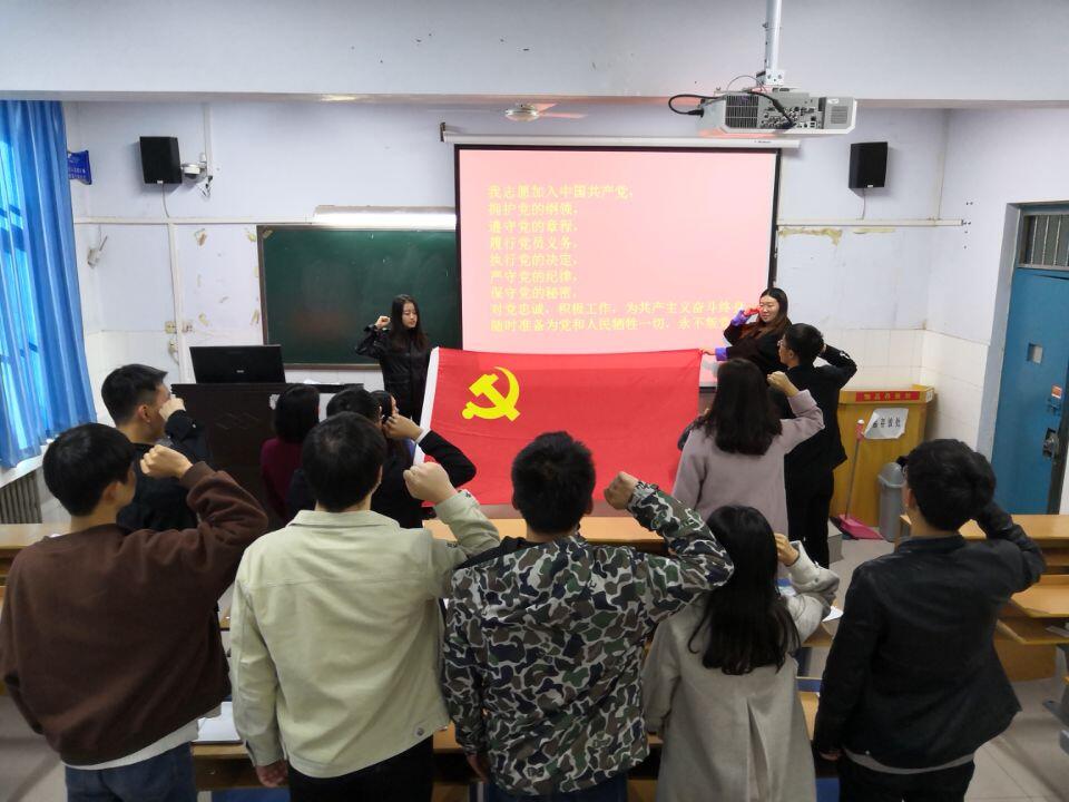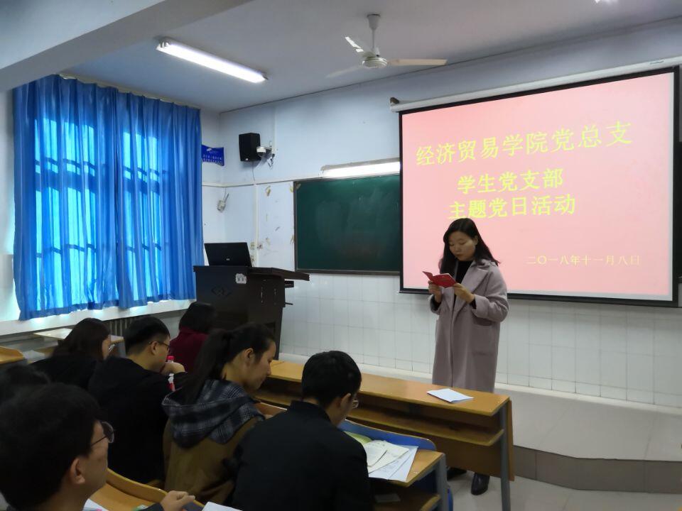 为深入贯彻学习党的十九大精神,进一步推进“两学一做”学习教育常态化制度化,进一步激励我院师生党员继承和发扬党的光荣传统,激发党员学习热情,增强广大党员干部的党性修养,充分发挥党员的先锋模范带头作用,严格落实省委组织部《关于全面推行党支部 主题党日活动的指导意见》的通知要求,11月8日下午,经济贸易学院党总支分支部举行了“重温入党誓词,学党章做合格党员”的主题党日活动。学院全体师生党员参加了此次活动,活动由党总支副书记田景丽主持。