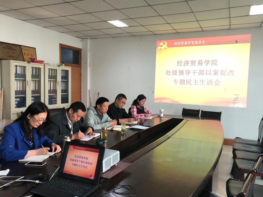 根据我校《2018 年以案促改专项工作方案》和《严明政治纪律和政治规矩开展整治“帮圈文化”专项排查工作方案》工作安排的通知要求,2018年10月22日上午,经济贸易学院党总支召开处级党员领导干部以案促改专题民主生活会,全体总支委员参会,会议由学院党总支书记牛建绥主持。